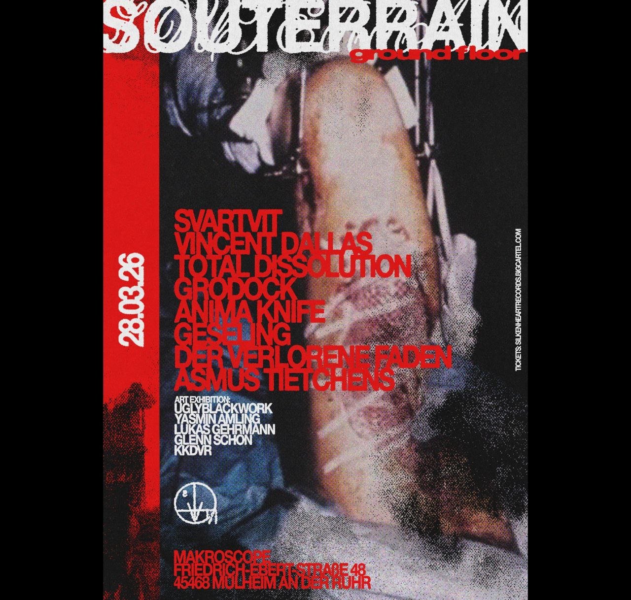 On March 28th, SOUTERRAIN: GROUND FLOOR Festival peels back the calm facade of the Western European cultural landscape to reveal the chaos lurking beneath. Silken Heart Records and Sonic Centurion join forces to present a powerhouse showcase of artists plucked from the thriving DIY noise/experimental/industrial scene.